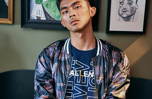 流行的动物元素鹰头与羽毛印花加上领口、袖口黑白螺纹拼接,尽显年轻。