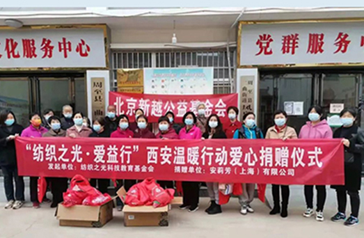 近日,安莉芳蓝丝带公益“纺织之光 · 爱益行”活动在陕西省西安市,山西省隰县、乡宁县西坡镇韩咀村等地开展。此次活动共捐赠物资200万元。