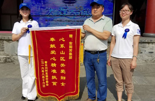 安莉芳集团始终坚持以人为本,创立至今四十多年来,不断研发创新,拥有专利技术近五十项;安莉芳注重绿色健康,在行业首家获得绿色生态纺织品认证,致力于为女性提供健康高品质的产品;连续十年的蓝丝带公益慈善活动,使得公益早已成为安莉芳义不容辞的社会责任和企业文化。爱心慈善是一项长期事业,作为国际著名内衣企业,安莉芳集团将会携手社会各界,共同努力,为中国女性公益事业尽一份绵薄之力,让爱心在青木川和新宾满族自治县,在祖国各地连绵传递,让爱传承!