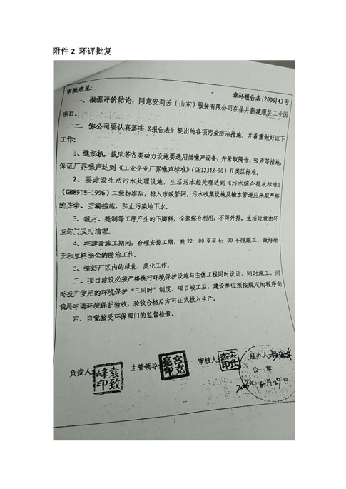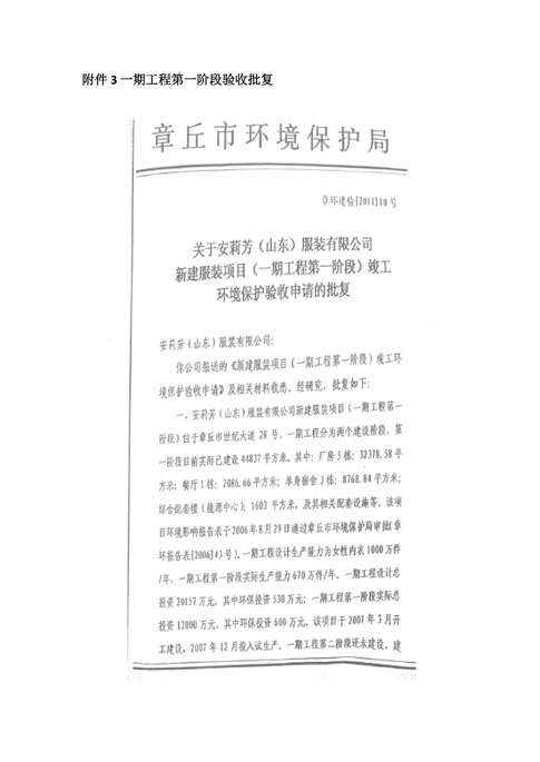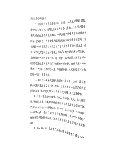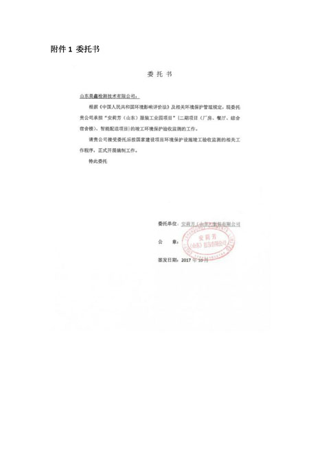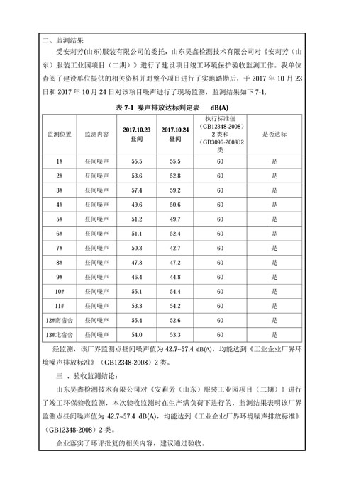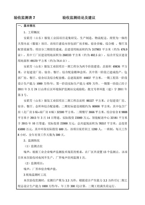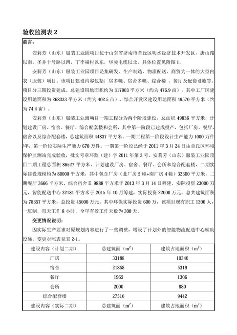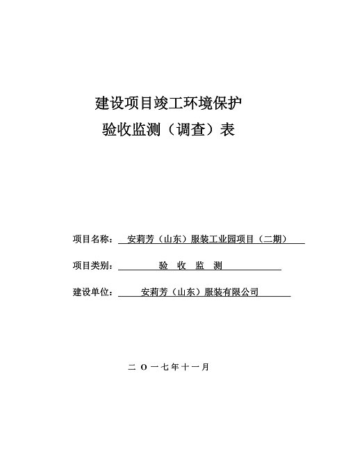 安莉芳山东公司二期项目竣工环境保护验收监测报告