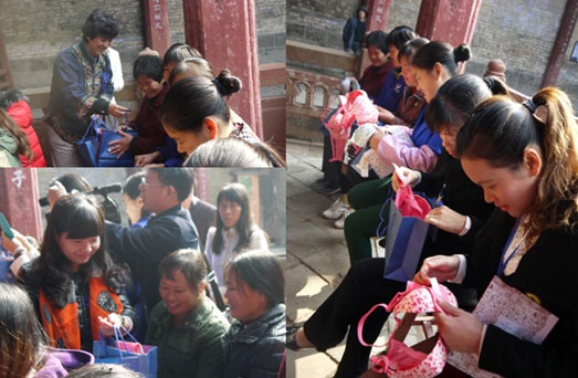 11月中旬,由中国妇女发展基金会与安莉芳集团联合发起的2014年“爱心传承·美无止境”蓝丝带公益慈善活动来到了江西革命老区——吉安,向当地女性捐赠了价值共达100万元的爱心物品。