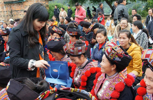 11月17日,2014年安莉芳“爱心传承·美无止境”活动于西南小城百色正式起航,活动期间,安莉芳集团向当地贫困少数民族女性捐赠了价值共达100万元的爱心物品,组织蓝丝带行动志愿者对当地贫困家庭进行慰问,并携手国内著名女性健康专家为当地妇女传递女性健康保健知识。