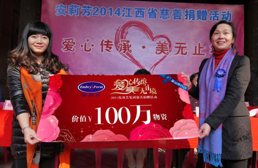 随着江西站慈善活动的成功开展,2014年“爱心传承·美无止境”即将迎来活动高潮,活动期间,安莉芳集团向广西、江西、贵州、山东、上海等地的少数民族和贫困妇女共捐赠了价值逾500万的物资。